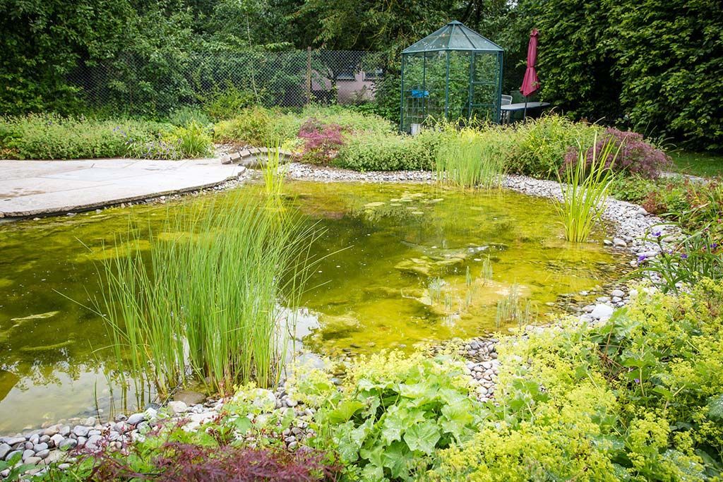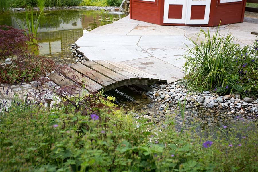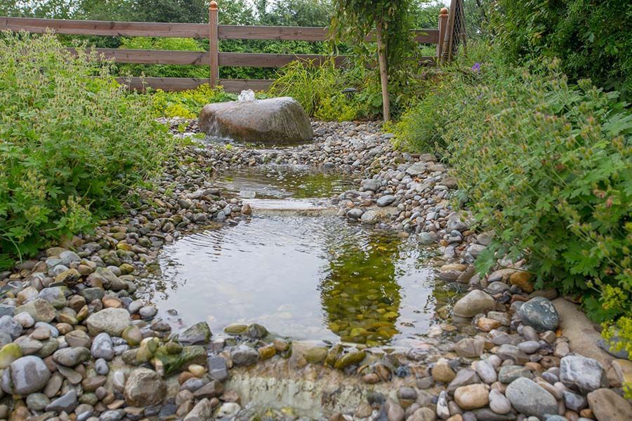Wir planen und installieren Brunnen- und Wasserspiele, legen Bachläufe und Gartenteiche an und integrieren damit das Element Wasser in Ihren Garten.