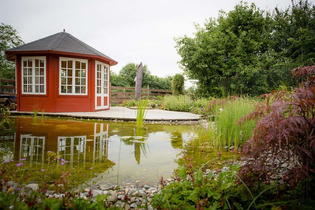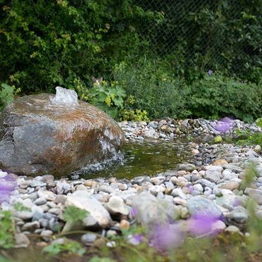 Ob Wasserspiel, kleiner Bachlauf oder Gartenteich: Wasser als Grundelement des Lebens strahlt Ruhe und Beständigkeit aus und dient an heißen Tagen vielen Tierarten als Erfrischung.